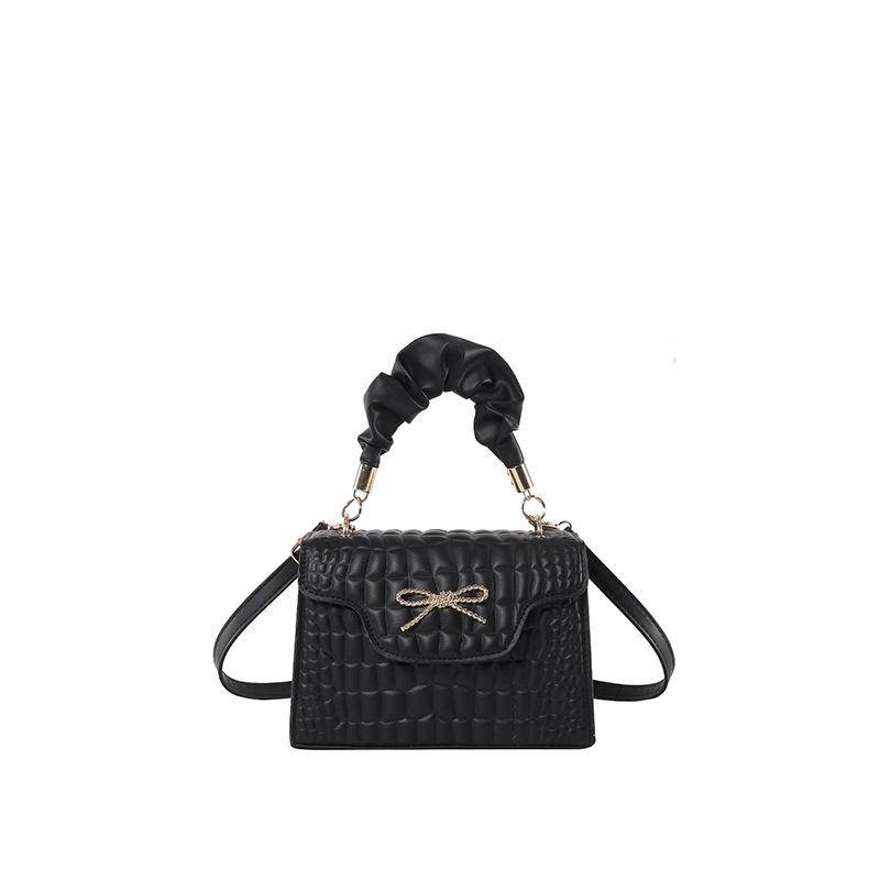 Сумка-трансформер с бантом, однотонная, квадратная, женская, 2024 года, простая, иностранного стиля, плиссированная, косая сумка через плечо чёрный