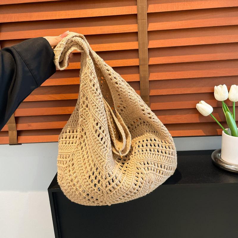 Сумка-хобо большой вместимости женская летняя универсальная 2025 новая на плечо для покупок плетеная сумка-тоут хаки