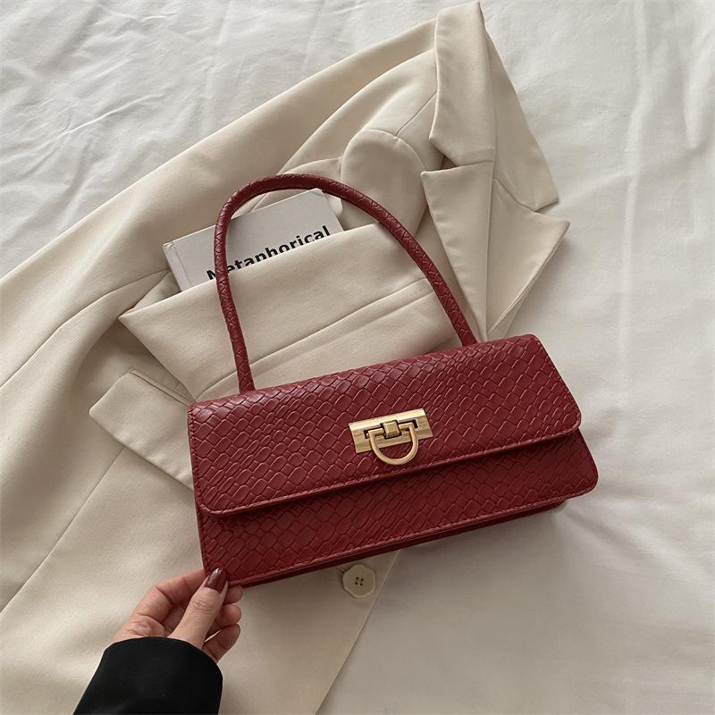 Сумка-хобо на одно плечо под мышкой летняя большой вместимости 2025 зарубежный стиль новая модель текстура замок плетение женская красный
