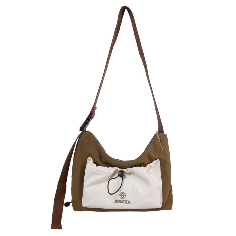 Сумка-хобо с плиссировкой для通勤, женская, большой вместимости, водонепроницаемая, нейлоновая, сумка через плечо, мужская сумка на плечо кофейный
