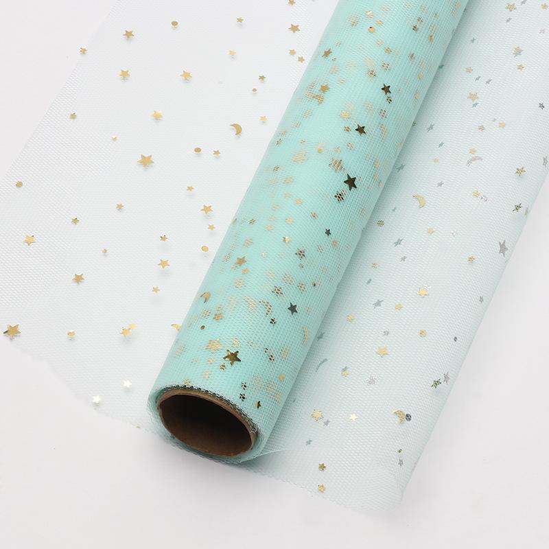 Сумка-цветок из пряжи со звездами и луной, расшитая золотым тиснением - прочное украшение в виде звезды с цветочным узором. 50cm*5 yards мятный зеленый