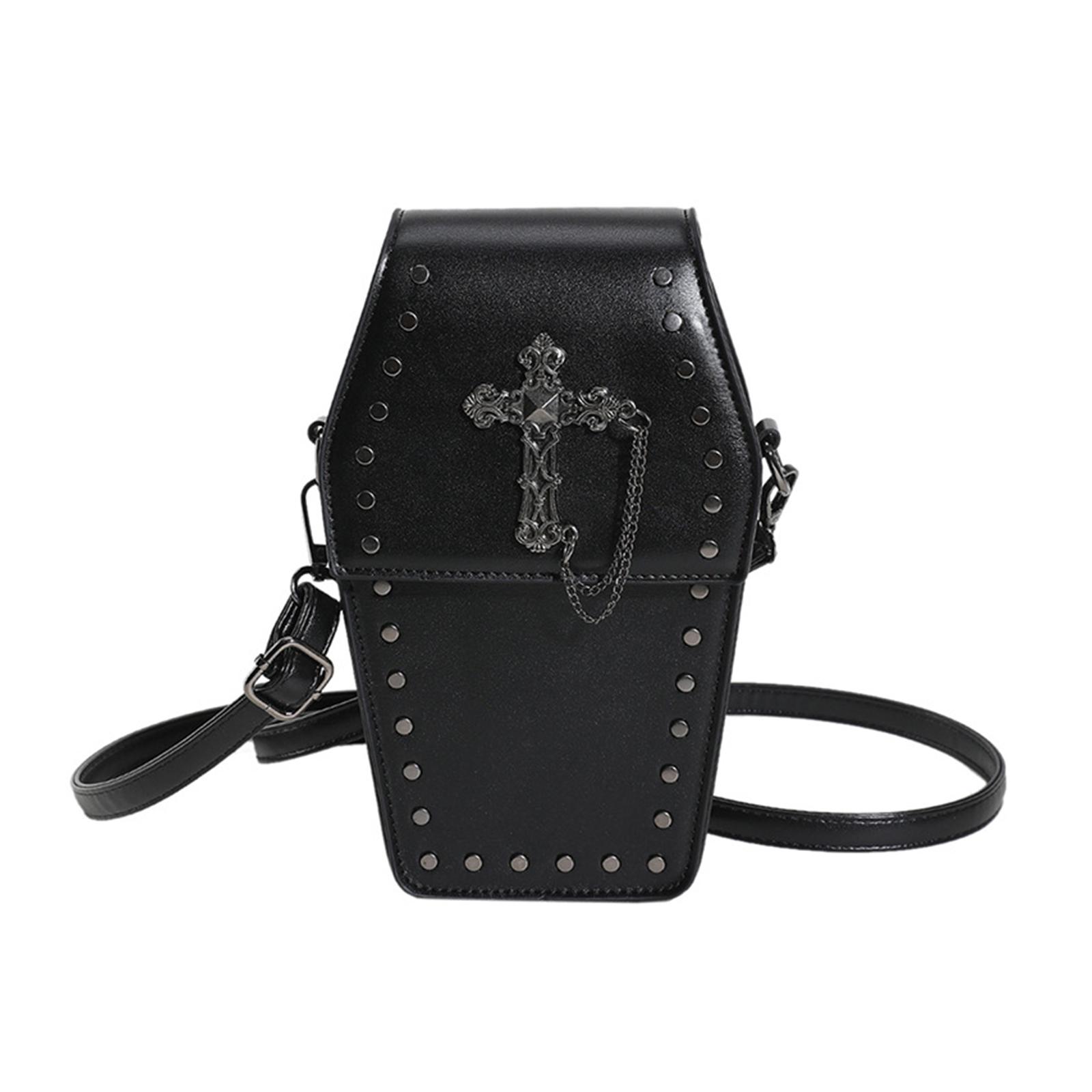 Сумка через плечо в форме гроба, маленькая сумка для мобильного телефона, готическая сумка для девушек и женщин, сумка с заклепками 2 чёрный