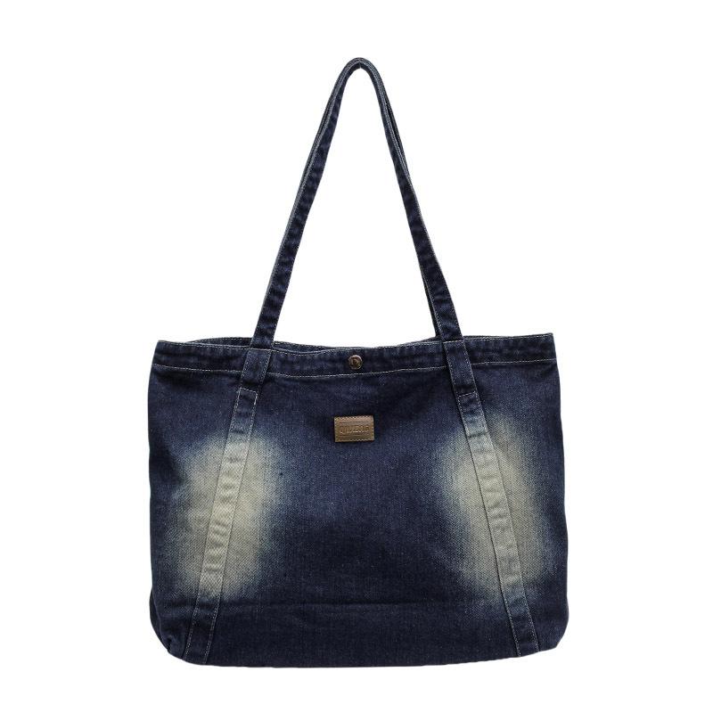 Сумка через плечо из денима, женская сумка для покупок, большая вместимость, сумка-тоут, ручная сумка синий