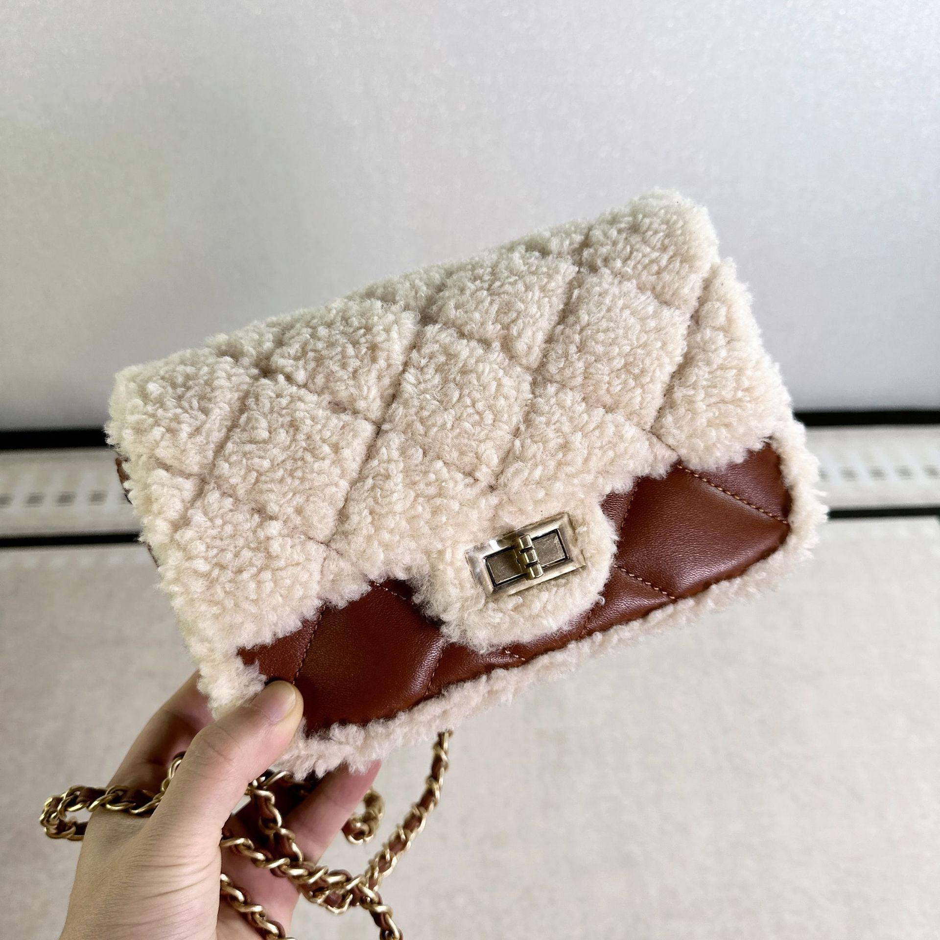 Сумка через плечо из натуральной кожи и овечьей шерсти с небольшой цепочкой из бриллиантов, коллекция осень/зима 2024 г.