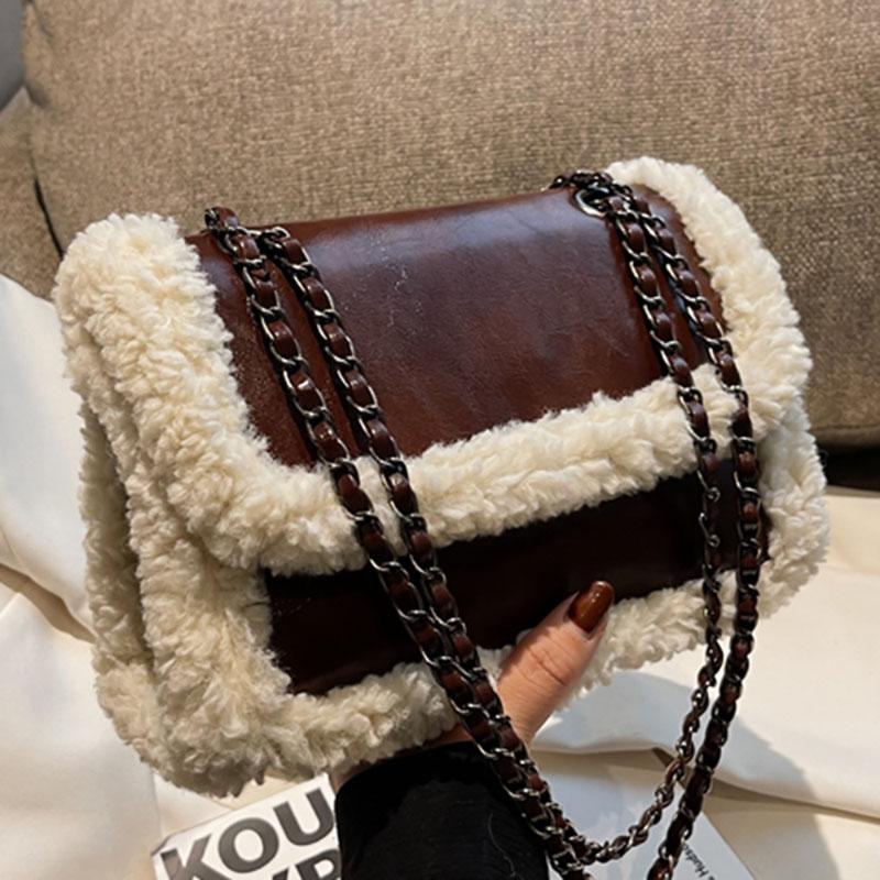 Сумка через плечо из овечьей шерсти в стиле ретро с цепочкой из лакированной кожи с глянцевой текстурой высокого класса, женская новая портативная сумка (20cm<Max Length<30cm)