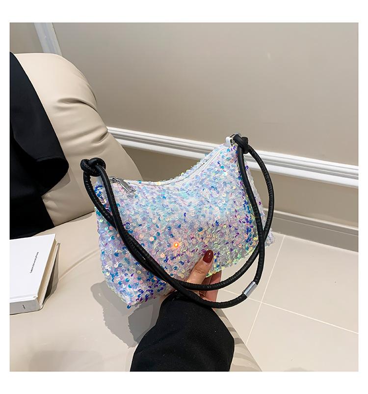 Сумка через плечо с блестками 2024 года, летняя новая фактура, повседневная, иностранная, простая, сумка-мессенджер, большая вместимость, сумка-багет белый