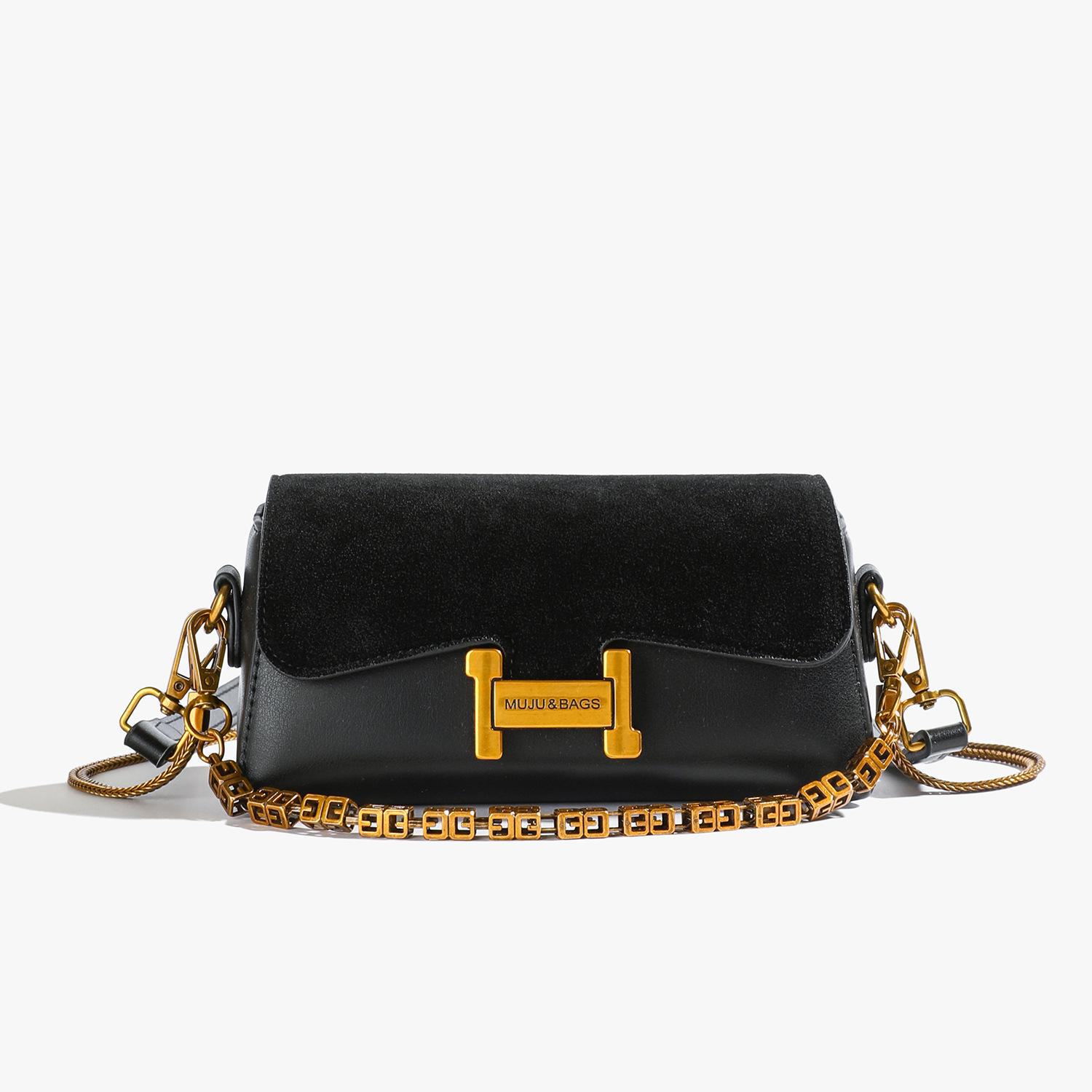 Сумка через плечо с квадратной цепочкой в стиле ретро - новая модная фактурная сумка-мессенджер для женщин чёрный