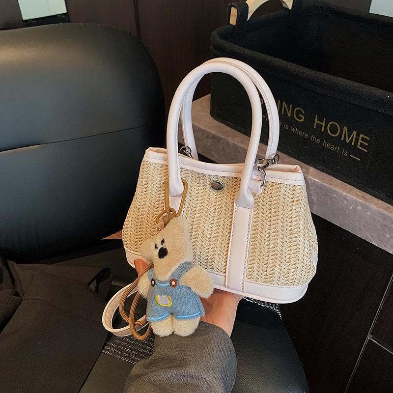 Сумка через плечо с косым ремнем, новая соломенная сумка 2025, повседневная сумка-ведро большой вместимости, женская сумочка, модная персонализированная женская сумка Without pendant белый