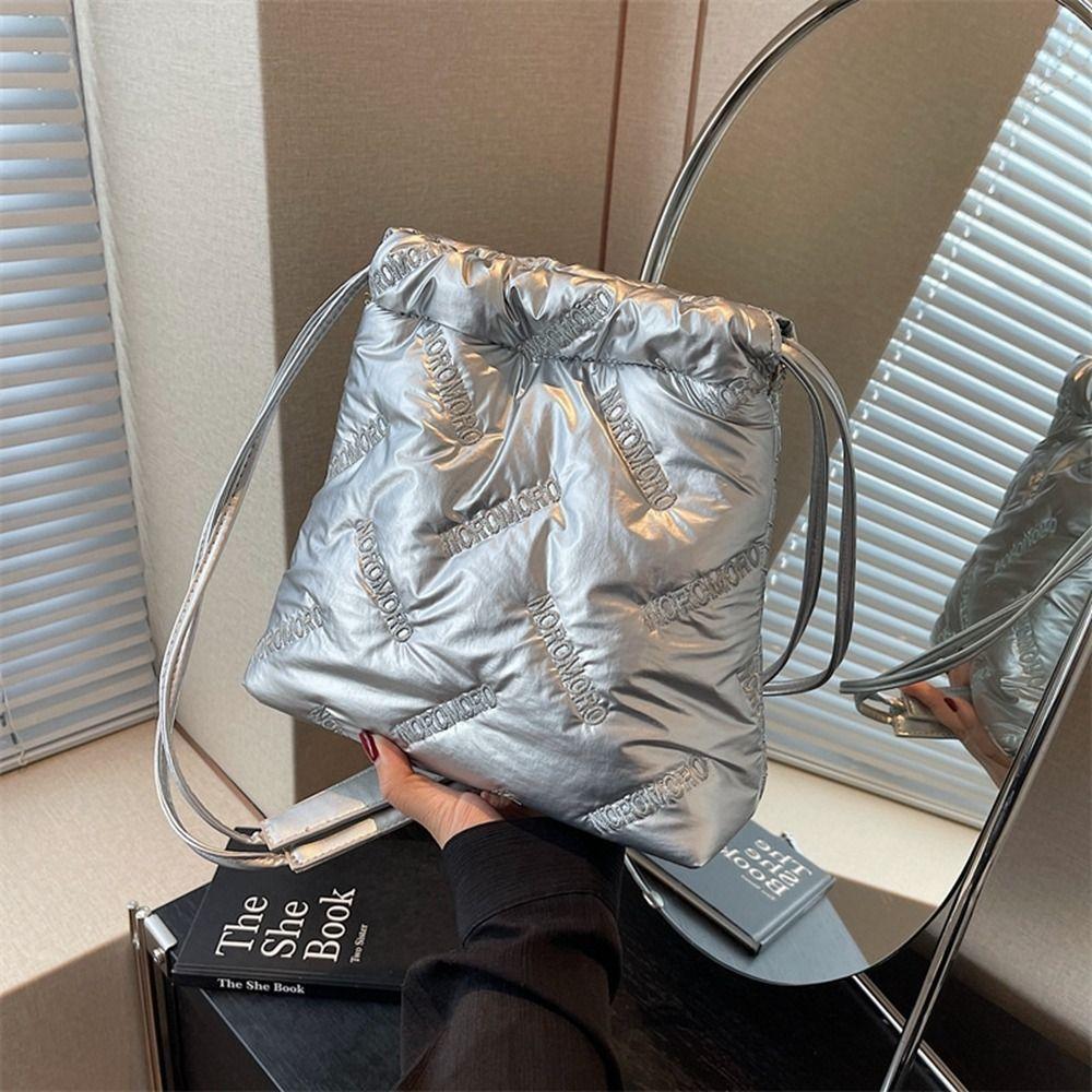 Сумка через плечо с пузырьками, однотонная, с буквенным принтом, хлопковая сумка-тоут, вышитая, сумка-ведро, уличная одежда