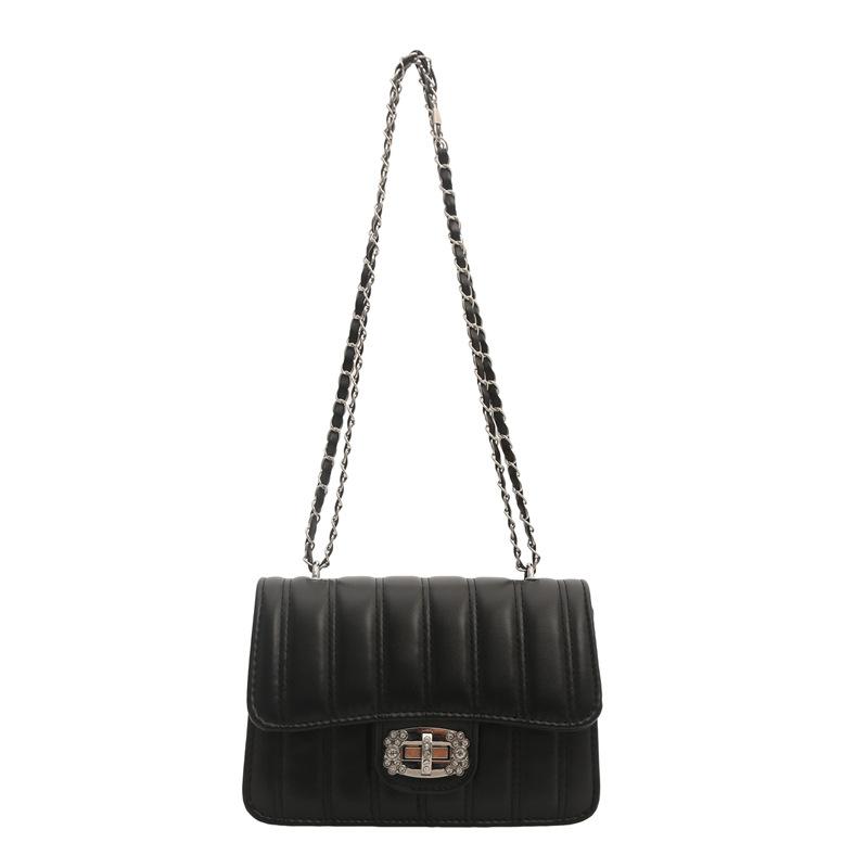 Сумка через плечо Chain Trend 2024, летняя новая сумка, женская сумка через плечо с замком Diamond Lock, повседневная маленькая квадратная сумка для поездок на работу чёрный