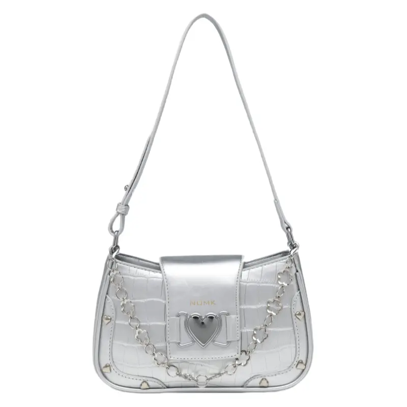 Сумка через плечо PU женская белая/черная/синяя/серебристая NOMK, пыльно-розовая