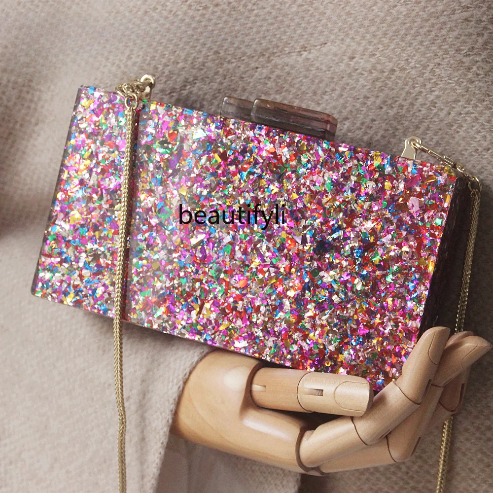 Сумка через плечо yj на одно плечо, простая подходящая ко всему модная вечерняя Женская акриловая сумка, цветной клатч с блестками