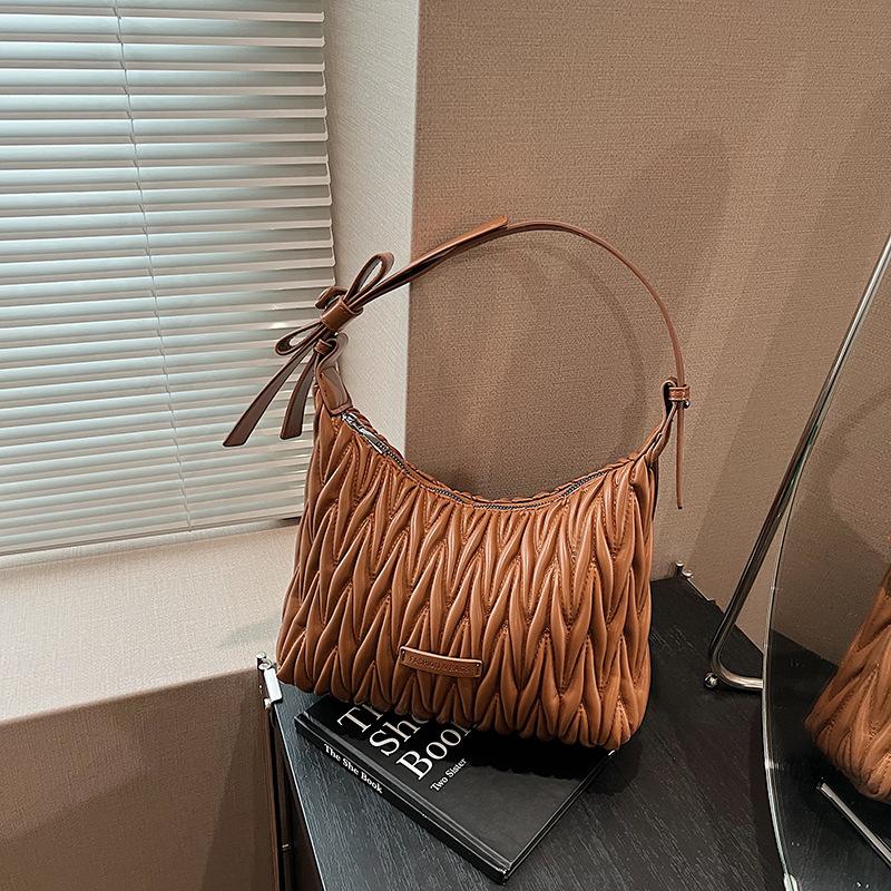 Сумка через подмышку Niche Design, плиссированная, женская, 2024 года, новая корейская версия, сумка через плечо с бантом, высококачественная сумка-мессенджер коричневый