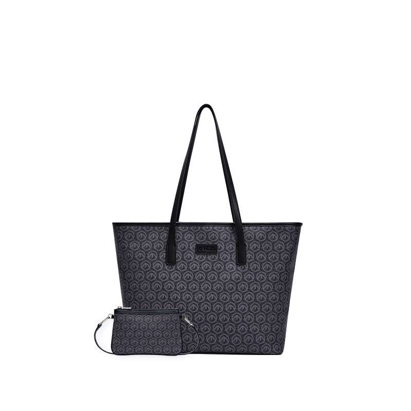 Сумка-шоппер из ПВХ поливинилхлорида через плечо женская черная/серая HE BAO BAO, [Tubas] Набор "Плетение Галактики Серый" в подарочной упаковке (для компьютера 14 дюймов)