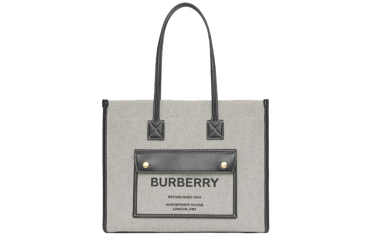 Сумка-шоппер из холста с кожаными деталями, небольшая женская сумка через плечо, серо-черная Burberry