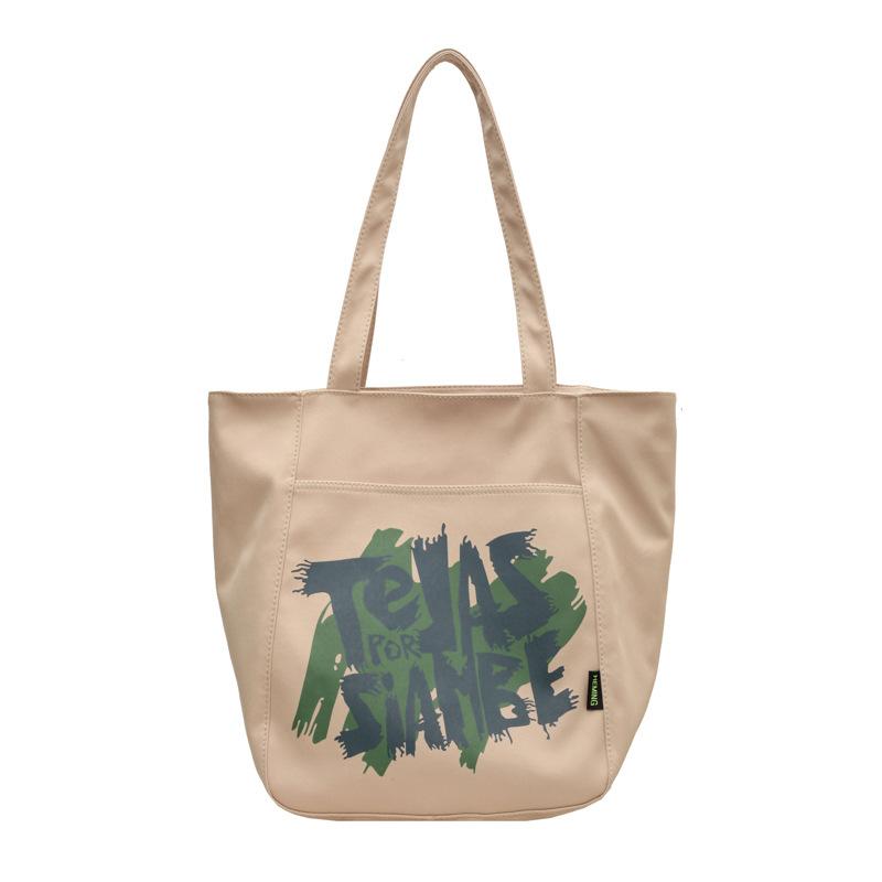 Сумка-шоппер через плечо с надписью, новинка 2025 года, большая вместимость, модная, простая холщовая сумка, женская студенческая сумка для занятий, женская хаки