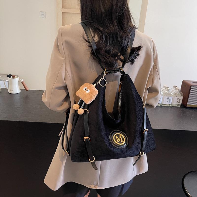 Сумка Commuter в стиле ретро, большая вместимость, женская, новинка 2024 года, рюкзак, сумка через плечо на осень и зиму чёрный