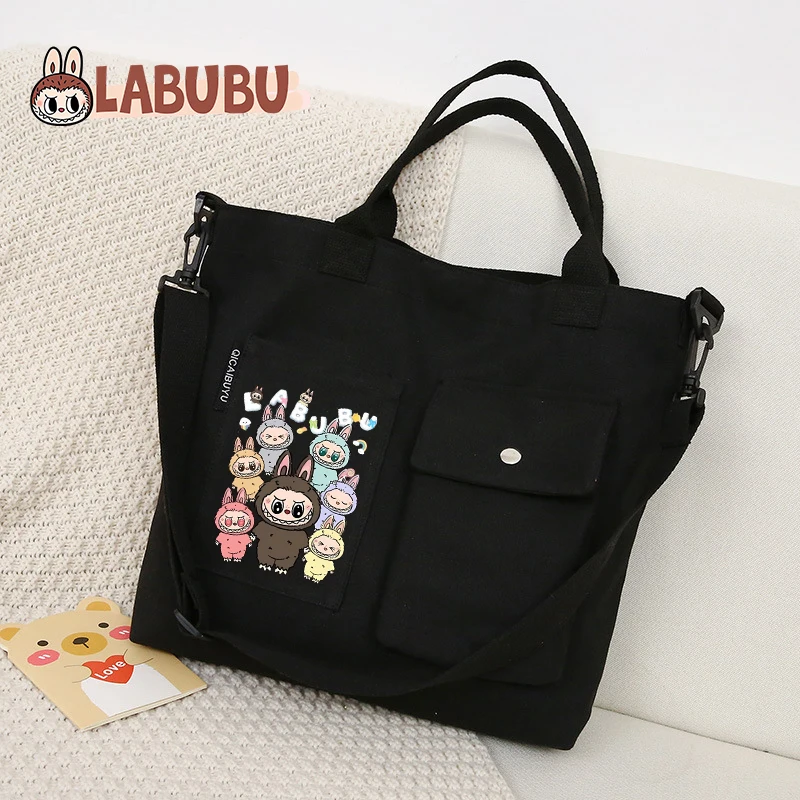 Сумка Labubu Harajuku, женская модная сумка с принтом, большая вместительная женская сумка на плечо, женская парусиновая сумка-тоут с милым мультяшным принтом, подарочная сумка для девочек