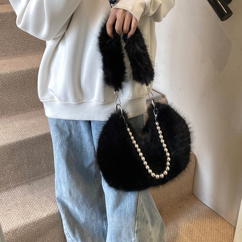 Сумка Mao Mao, модная сумка через плечо, сумка-мессенджер на цепочке, сумка через плечо для поездок на работу, плюшевая сумка через плечо чёрный