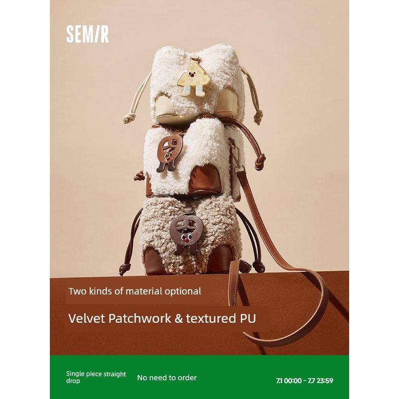 Сумка Senma Сумка-ведро Женская Мягкая Клейкая Милая Набивная Сумка с Наконечником Мини Сумка через Плечо Ретро Сумка Кроссбоди Сумка Доктора Caramel Brown 51101