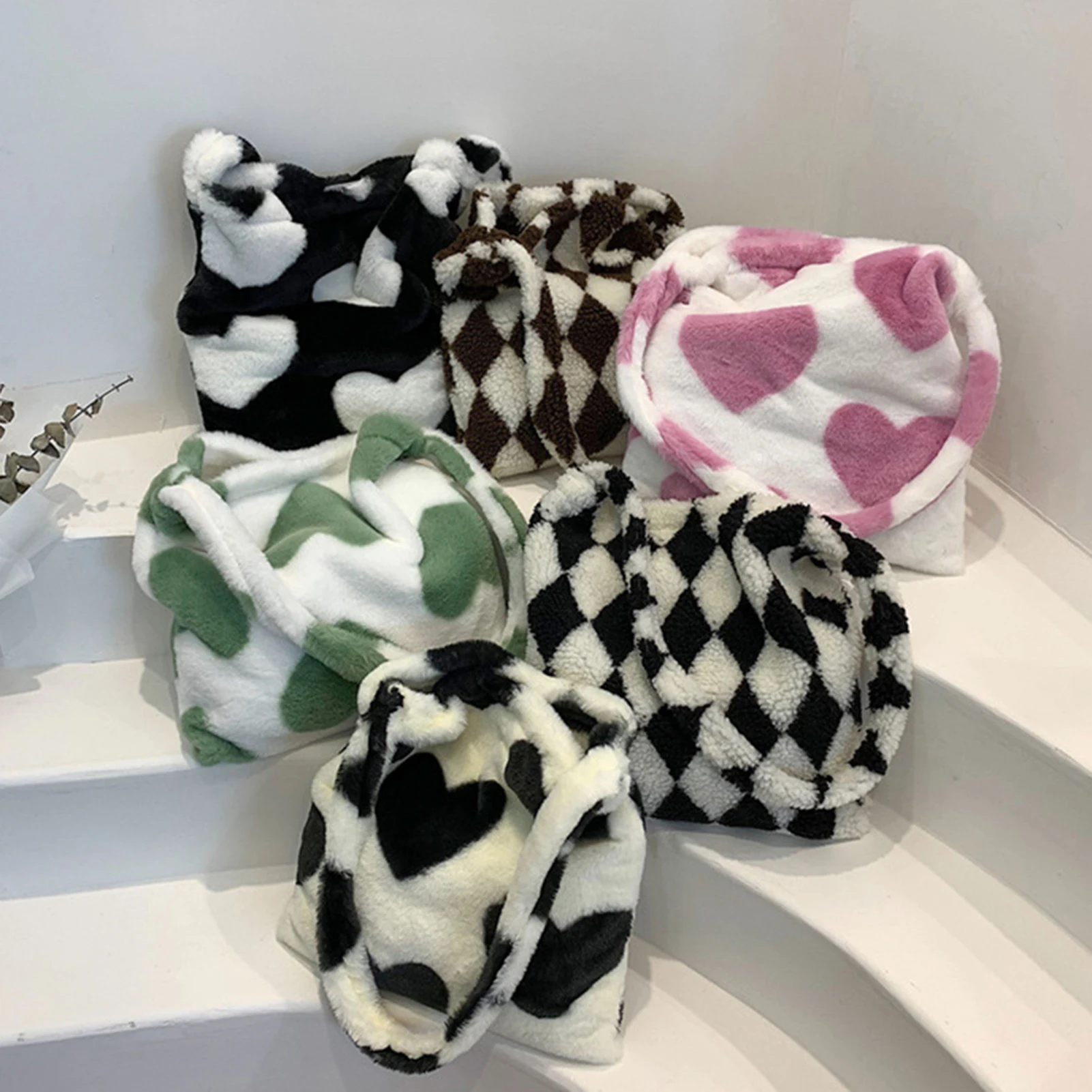 Сумки в ретро стиле с принтом Love для женщин, 2021, мягкие плюшевые сумки на плечо, Женская Вместительная дорожная сумка, зимняя теплая пушистая...
