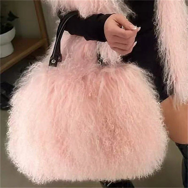 Сумки из натурального монгольского меха, австралийская пляжная шерстяная меховая сумка на плечо, женская сумка на запястье из тибетского меха ягненка, большая вместимость
