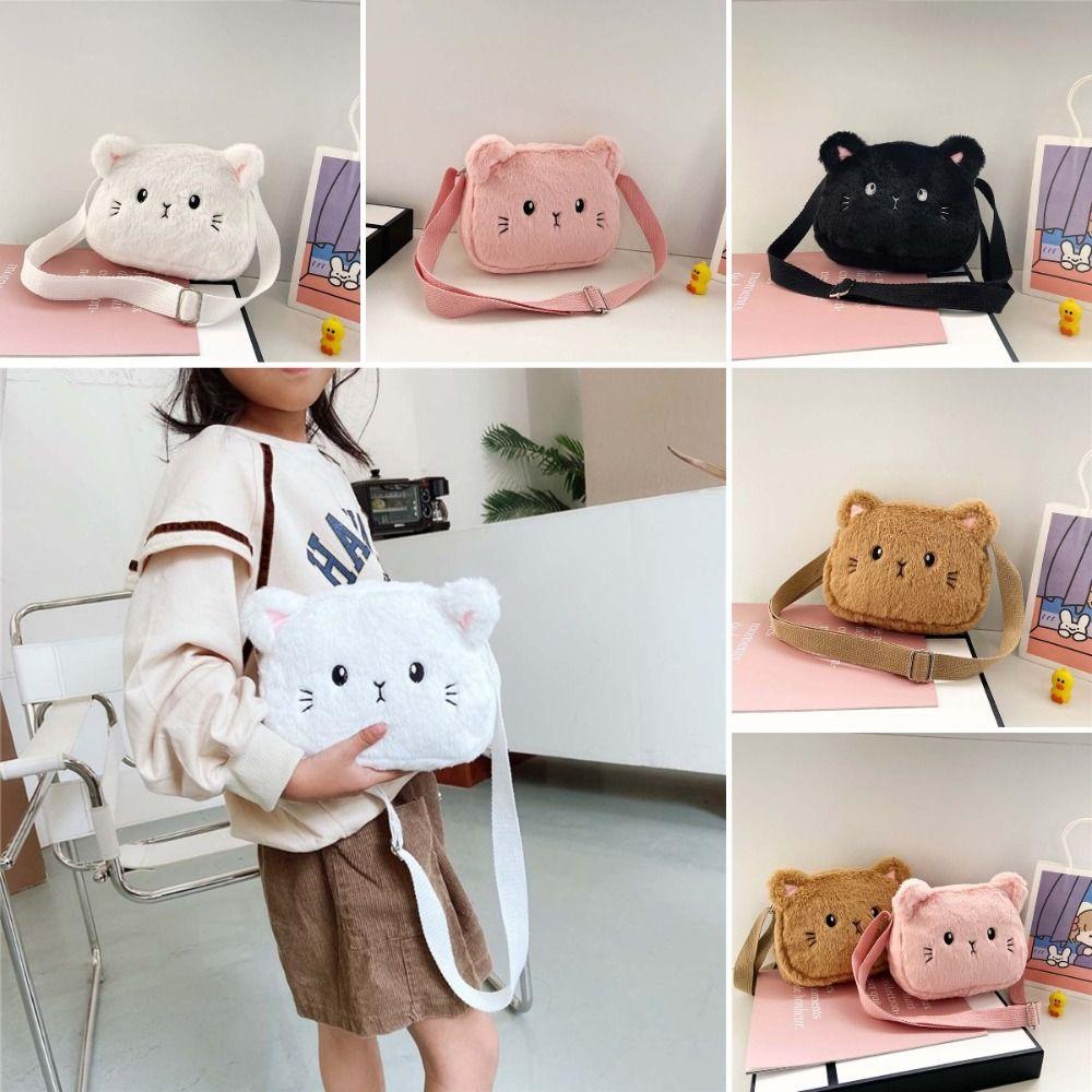 Сумки через плечо с плюшевыми кошками, мягкая сумка-мессенджер с мультяшным котом, дорожный кошелек для монет, игрушка в подарок для маленьких девочек чёрный