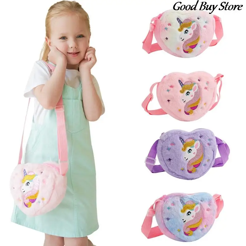 Сумочки в форме сердца с единорогом, Детский плюшевый Кошелек на плечо, миниатюрные мягкие сумки через плечо, регулируемые ремни, сумка для хранения, замшевые сумки-тоуты