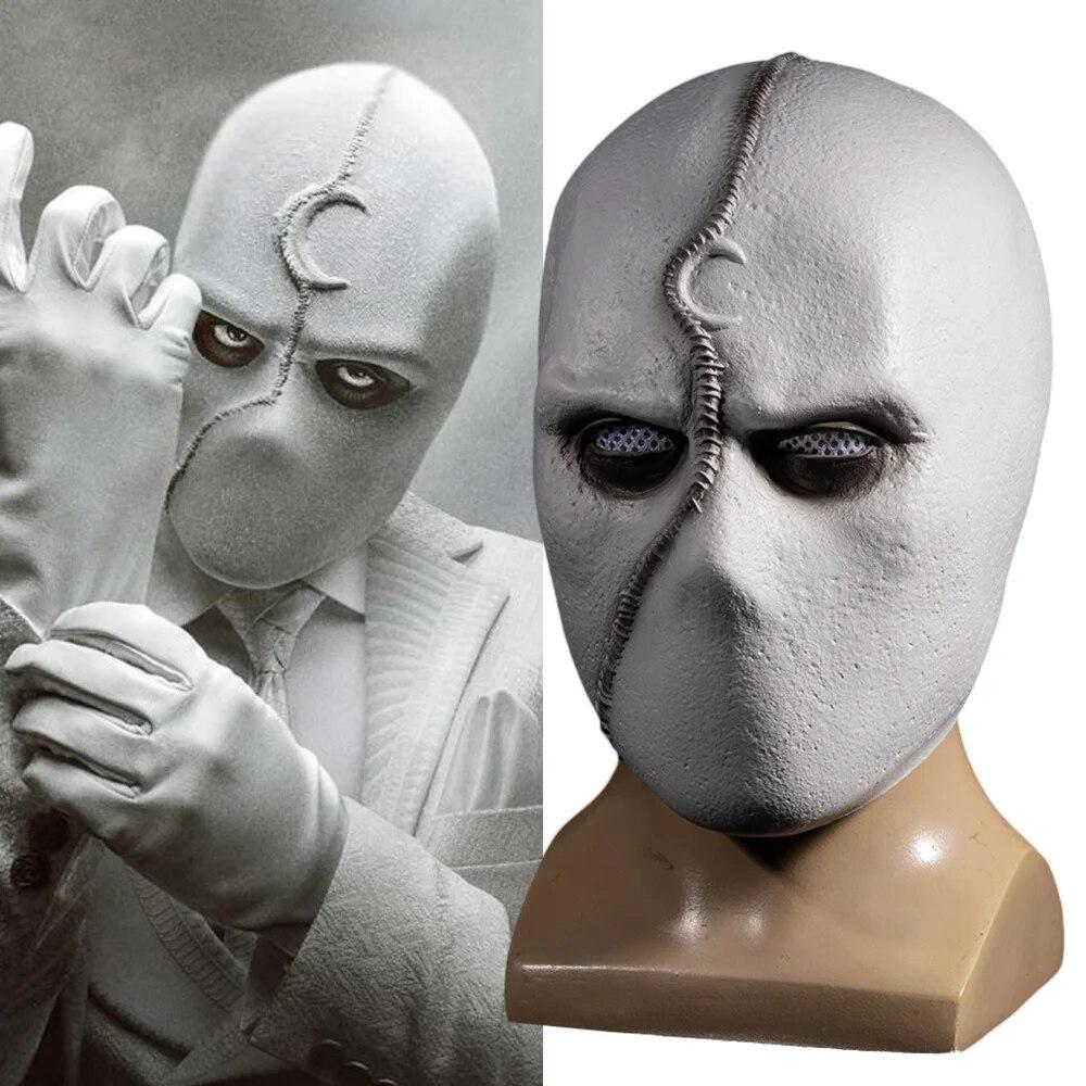 Супергерой Лунный Рыцарь Косплей Костюм Латексные Маски Шлем со светодиодной подсветкой 1:1 тип маска для косплея Марка Спектора для взрослых