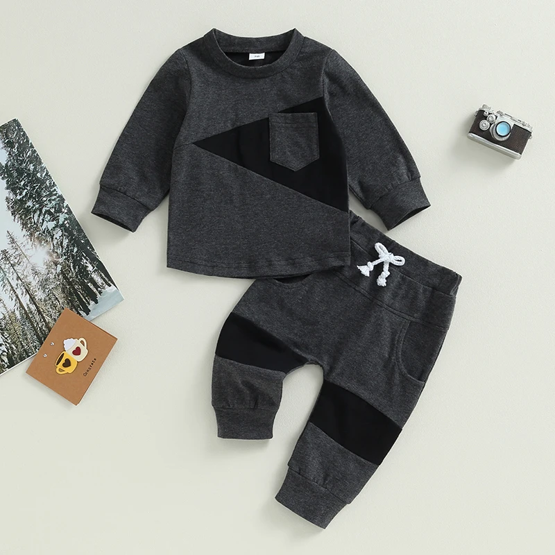 2023-06-11 Lioraitiin 0-3Years Toddler Baby Boy 2Pcs Fall Outfit Patchwork Long Sleeve Sweatshirt and Elastic Long Pants Set