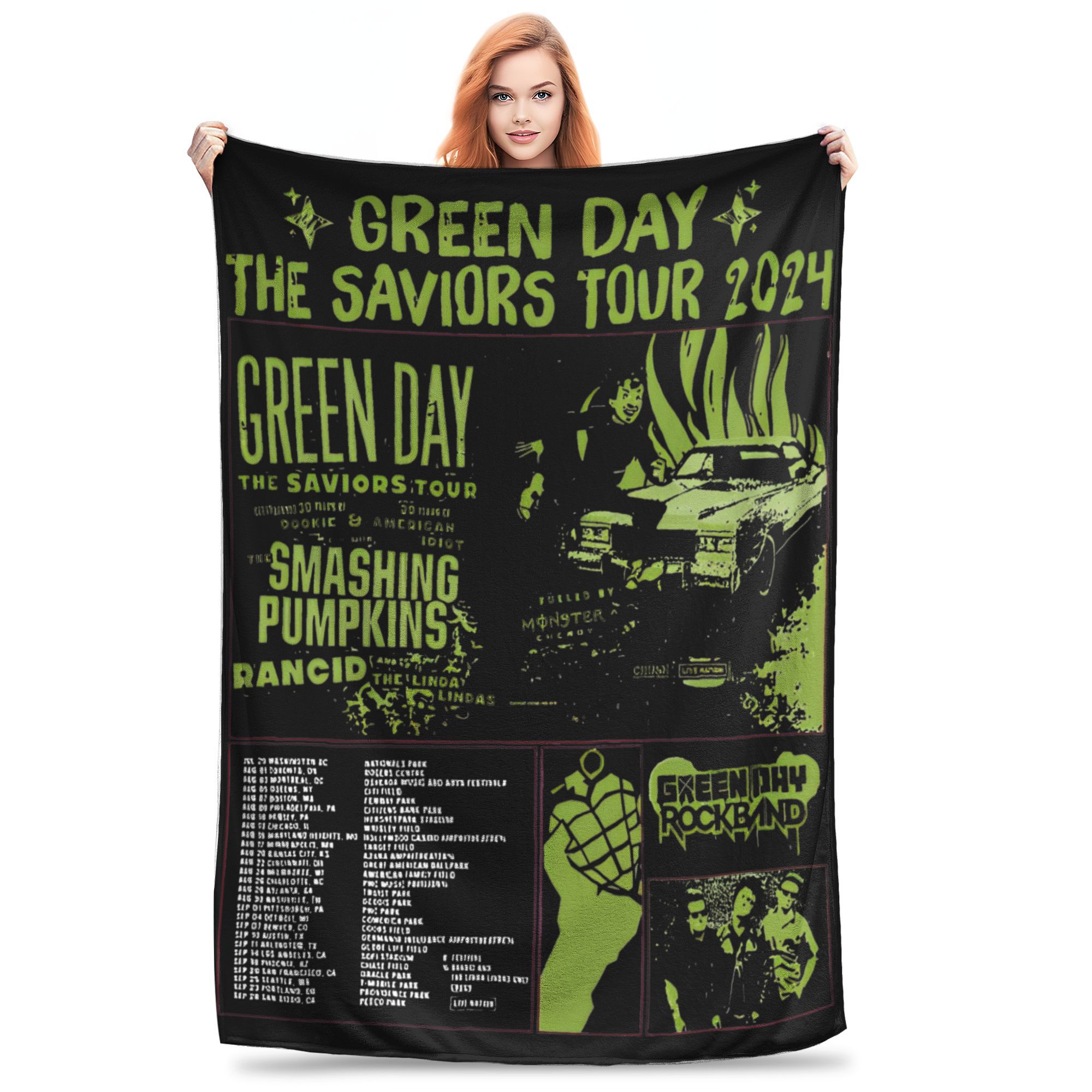 Супермягкий плед Green Day Saviors Tour 2024, премиальный флис, легкое одеяло для кровати, уютное теплое одеяло на все сезоны 30x40in