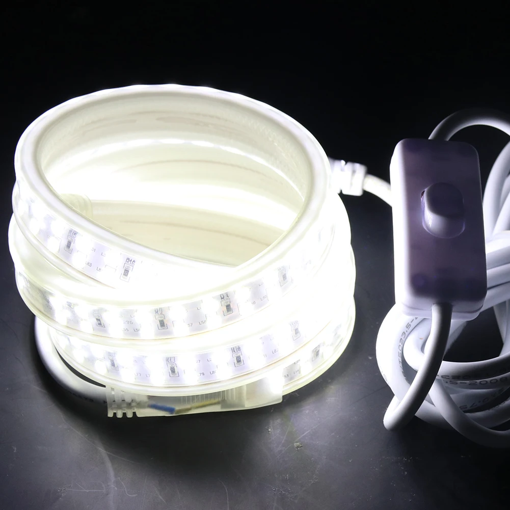 Суперъяркая светодиодная полоса освещения 220 В 2835 Светодиодный/м белая/теплая белая Водонепроницаемая светодиодная лента ЕС переключатель питания с кабелем 3 м