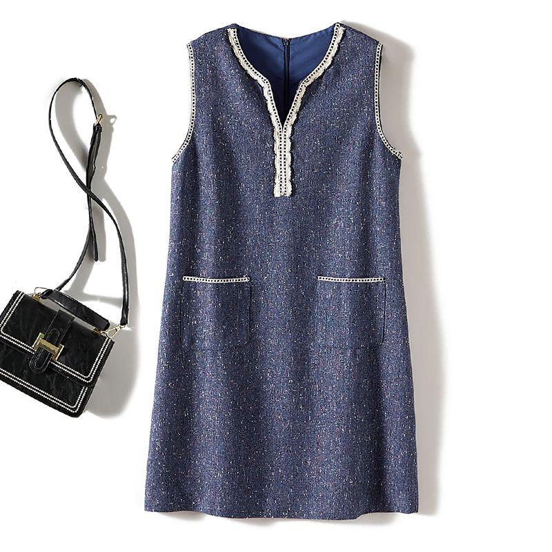 Супер Белое Морское Голубое Платье-Жилет! Элегантное женское платье с кружевной отделкой, маленьким V-образным вырезом, шерстяным карманом, осенне-зимняя юбка Sky Blue L