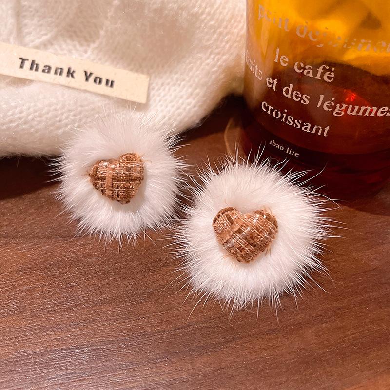 Супер Бессмертный Универсальный Темперамент Волосатый Персик Сердце Волос Шар Серьги Для Женщин 1 pair