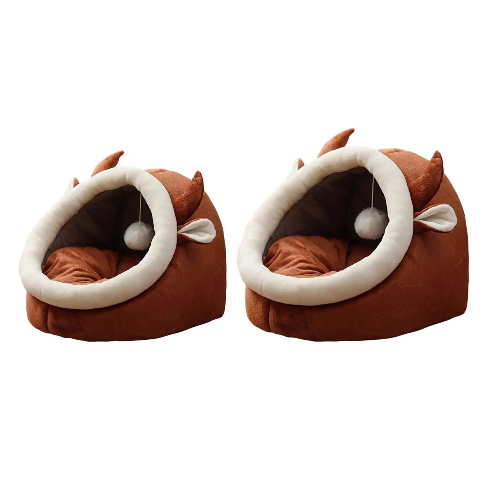 Супер Лежанка для кошек, спальная кровать для собак со съемной моющейся подушкой, полузакрытая Лежанка для конуры, домик для кошек для котят