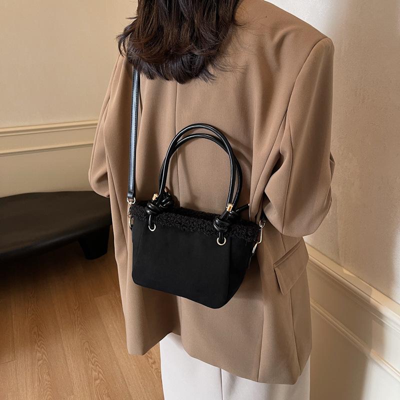 Супер огненная нишевая ретро матовая сумка женская 2025 новая универсальная сумка-мессенджер изысканная портативная сумка-ведро 26*11*15 чёрный