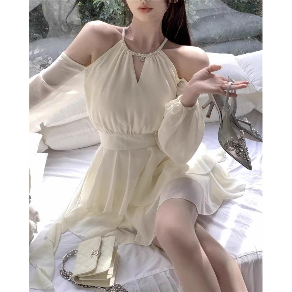 Супер фея темперамент короткое абрикосовое платье с открытыми плечами женское новое повседневное иностранное с оборками халтер юбка летом XL