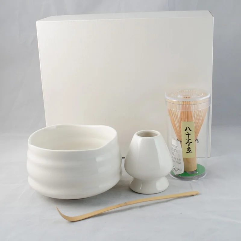 Супер 4 в 1, белый подарочный набор зеленого чая маття, фарфоровые инструменты, ручная работа, японский бамбуковый держатель и ложка для венч...