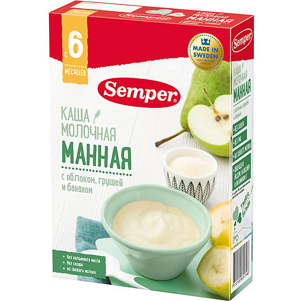 Сухая молочная каша Semper манная с яблоком, грушей и бананом, с 6 мес, 200 г