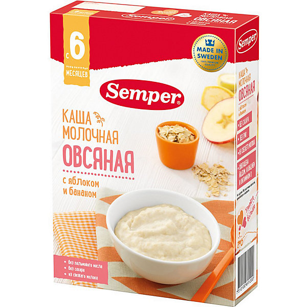 Сухая молочная каша Semper овсяная с яблоком и бананом, с 6 мес, 200 г