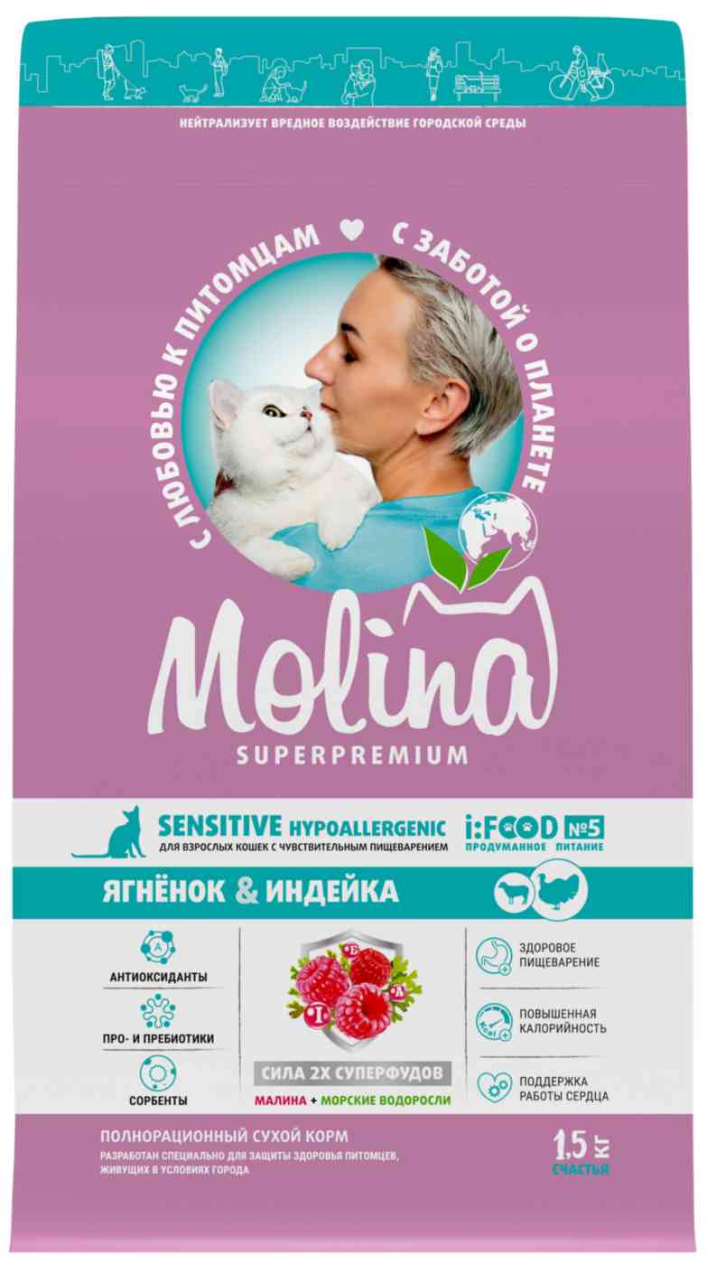Сухой корм для кошек с чувствительным пищеварением Molina ягненок-индейка