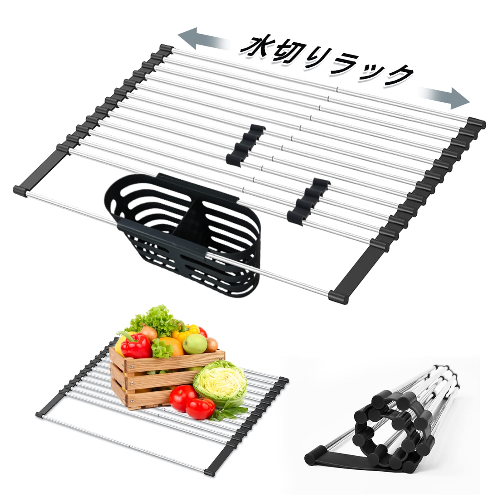 Сушилка для посуды с корзиной для сушки и подставкой для палочек, аккуратная и опрятная, из нержавеющей стали, регулируемая, расширяемая, сворачивающаяся, для высокой грузоподъемности, для над чёрный