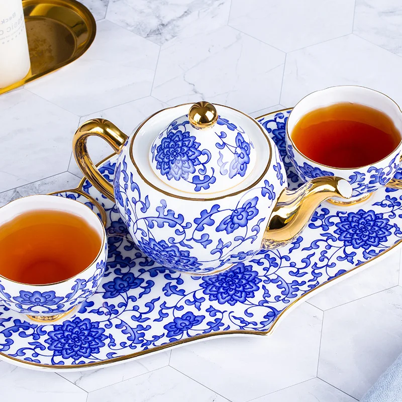 Bone Chinese China living room study traditional exquisite Ruyi blue lotus tea set household teapot teacup saucer