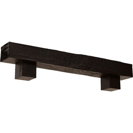 Ekena Millwork 8 H x 8 D x 72 W Rough Sawn Faux Wood Fireplace Mantel Kit w/ Alamo Corbels Premium Mahogany