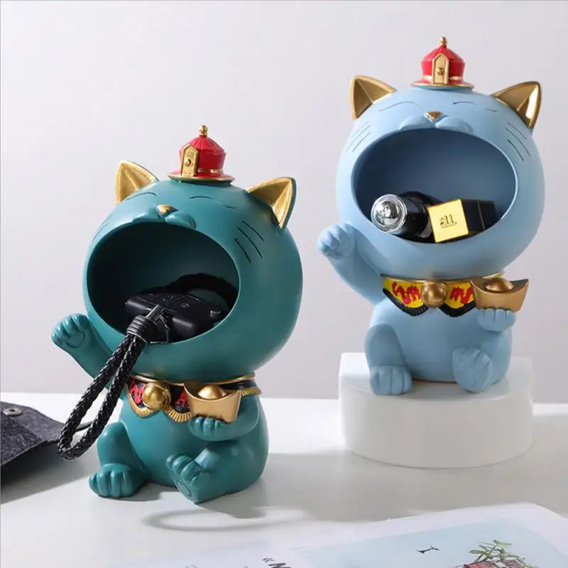 Счастливая кошка, искусственная кошка, орнамент из смолы, большая емкость, кошки удачи, крыльцо, украшение для ключей, коробка для хранения, ...