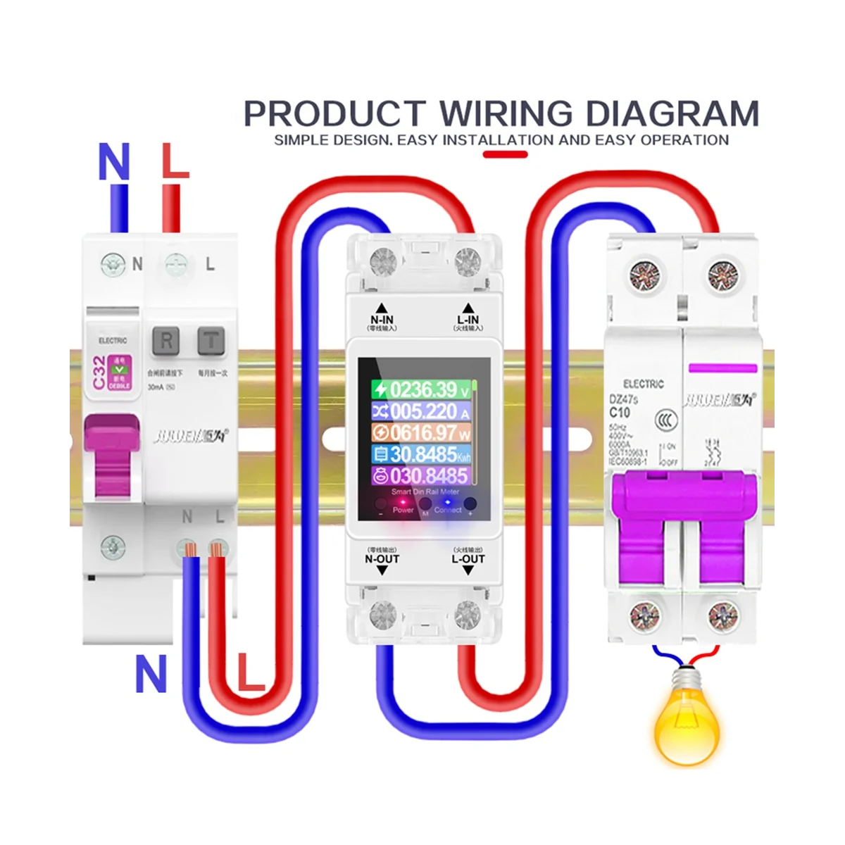Счетчик электроэнергии AT2PW 100A Tuya с Wi-Fi на Din-рейке, умный переключатель с дистанционным управлением, 220 В переменного тока, цифровой вольт, кВтч, измеритель частоты