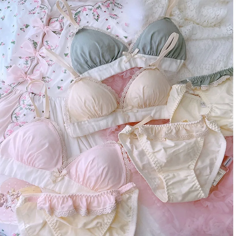 Съемная двойной плечевой ремень комплект с бюстгальтером из чистого хлопка, простые однотонные треугольная чашка комплект нижнего белья б...