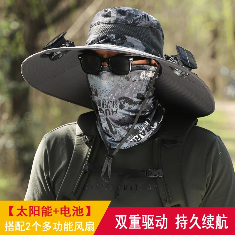 Съемная уличная солнечная шляпа с двойным вентилятором и зарядкой от солнца с большим краем, мужская быстросохнущая солнцезащитная шляпа, летняя