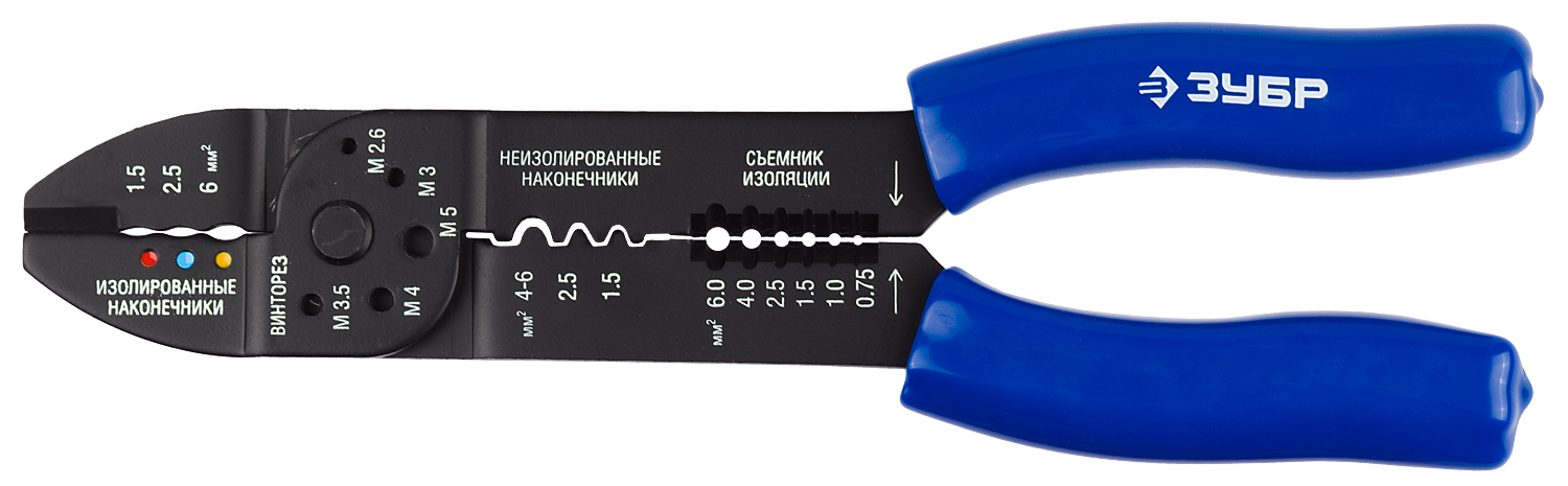 Съемник изоляции (стриппер) от 0.75 мм² до 6 мм², обжим наконечников, резка провода, Зубр ЭКСПЕРТ МТ-30 (22668-23), МТ-30
