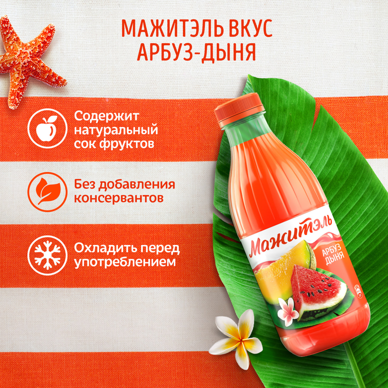 Сывороточный коктейль Мажитэль с соком Арбуз-Дыня 950 г